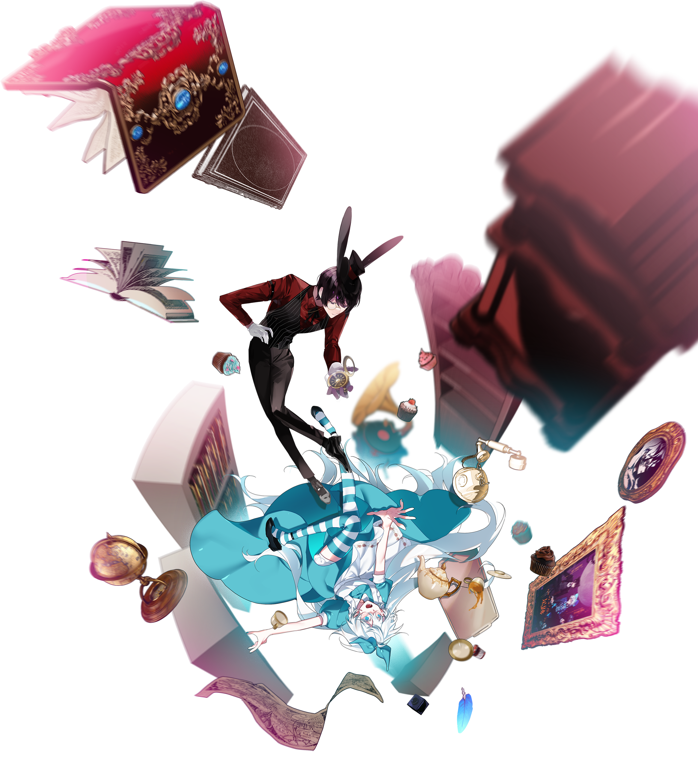 언니와 함께 강둑에 앉아 시간을 보내던 앨리스는, 불현듯 눈에 띈 토끼를 쫓아가 굴 속으로 뛰어듭니다.
